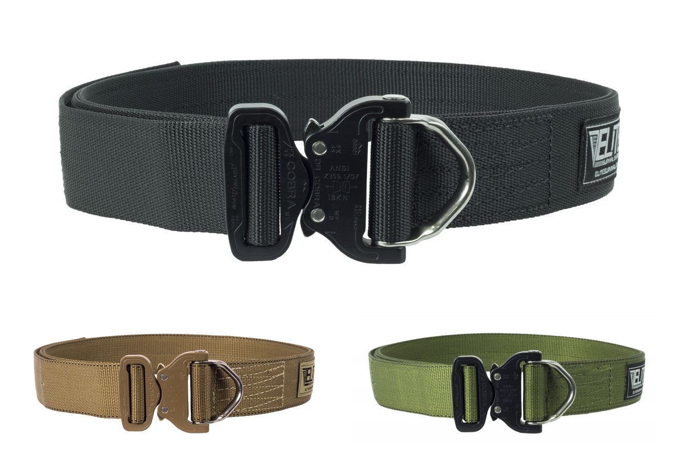 Elite rigger belt by SEAG from IL United States Written on March 19 2017 Review for Elite Survival Systems Elite Cobra Riggers Belt. This item is the first of its kind to include the D-Ring Cobra Buckle safety hardware that fuses AustriAlpins patented Cobra quick release system and a rescue D-ring. The Elite Survival Systems Riggers Belt is equipped with a durable AustriAlpin Cobra D ring buckle.